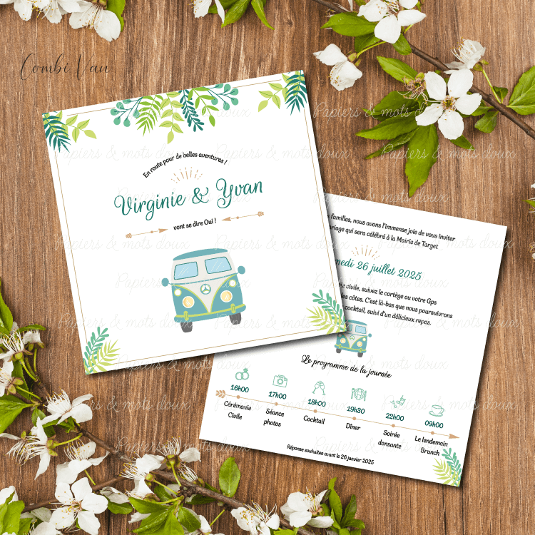 Nous adaptons nos créations en fonction de votre budget. Ainsi, nous vous proposons parmi nos formules, l’envoi de votre papeterie en format PDF, pour confectionner vous-même vos faire-part.